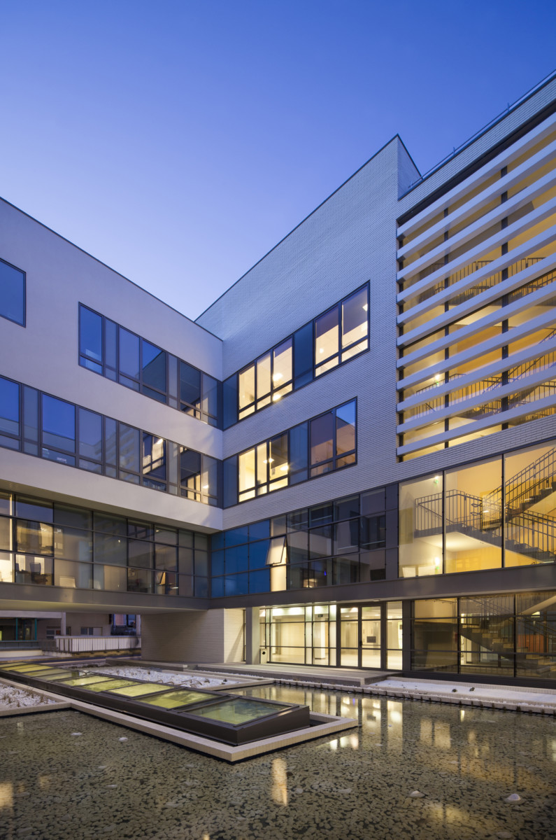 Implanté sur une parcelle de terrain en pente, exiguë et très contrainte, le nouveau plateau des urgences du Centre Hospitalier de Créteil développe une architecture maîtrisée, aux volumes simples, riche de changements d’échelles, de transparences et de vues offertes sur les coteaux de la Marne. Conservant les circuits existants de l’hôpital conçu sur un modèle pavillonnaire et complété de multiples extensions, le nouvel équipement