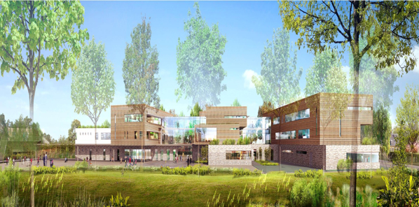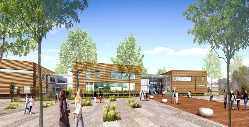 Reconstruction du collège d’une capacité de 600 élèves avec une section SEGPA et ses logements de fonction. Bâtiment à énergie positive, certification HQE® : ventilation double flux (PAC Géothermique), 1 000 m² de panneaux photovoltaïques, éclairage LED.