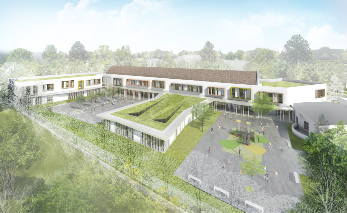 L’extension sur l’emprise ainsi libérée et sur les emprises existantes de l’école élémentaire pour la faire passer de 12 à 16 classes, et pour offrir les espaces nécessaires, manquants à ce jour pour le périscolaires