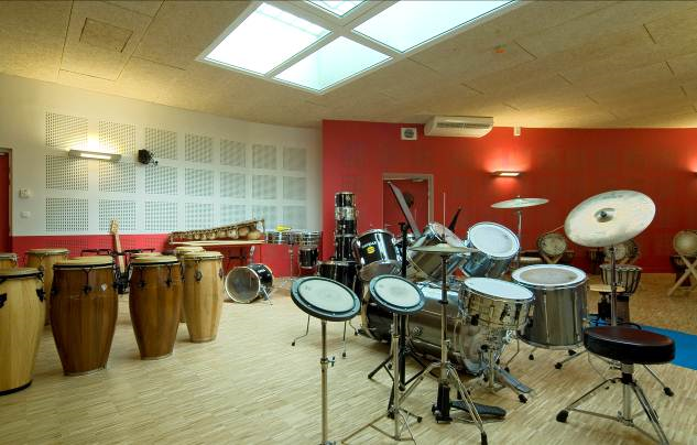 Ce centre comporte deux salles d’audition organisées autour d’un foyer, des salles de cours, des studios de travail et une salle de répétitions.